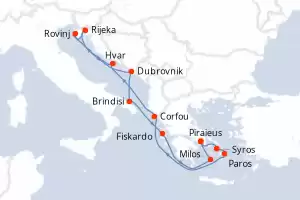Itinerary : Piraieus, Paros, Rhodes, Corfu, Hvar, Rijeka, Rovinj, Zadar, Dubrovnik, Brindisi, Milos, Piraieus