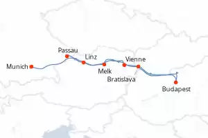 Itinerary : Munich, Melk, Vienna, Budapest, Bratislava, Linz, Passau