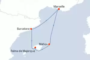 Itinerary : Marseille, Mahon, Palma de Mallorca, Barcelona, Marseille