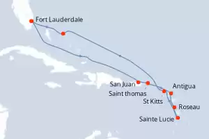 Itinerary : Fort Lauderdale, San Juan, St Thomas, Antigua, Roseau, St Lucie, St Kitts, Half Moon Cay, Fort Lauderdale