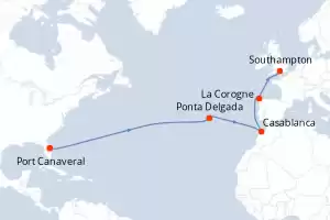 Itinerary : Port Canaveral, Punta Delgada, Casablanca, The Coruna, Southampton