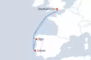 Itinerary : Southampton, Vigo, Lisbon, Southampton