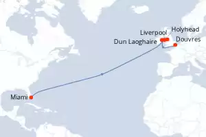 Itinéraire : Miami, Liverpool, Holyhead, Dun Laoghaire, Douvres