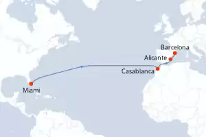Itinéraire : Miami, Gran Canarias, Casablanca, Alicante, Barcelone
