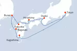 Itinéraire : Tokyo, Osaka, Hiroshima, Fukuoka, Busan, Sasebo, Kagoshima, Tokyo