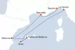 Itinéraire : Savone, Marseille, Valence, Palma de Majorque, Ibiza, La Spezia