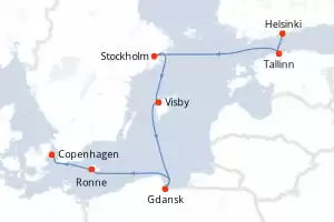 Itinéraire : Helsinki, Tallinn, Saaremaa, Stockholm, Visby, Gdansk, Christiansø, Gudhjem, Copenhague