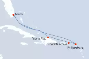 Itinéraire : Miami, Puerto Plata, Charlotte Amalie, Saint Johns, Saint-Martin (Philipsburg), Miami