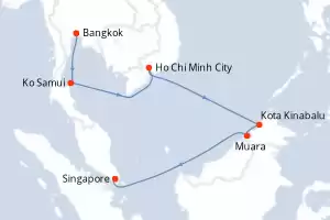 Itinéraire : Bangkok, Ko Samui, Ho Chi Minh-Ville, Kota Kinabalu, Muara, Singapour