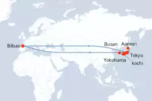 Itinéraire : Bilbao, Tokyo, Yokohama, Tokyo, Aomori, Sakai-Minato, Busan, kochi, Tokushima, Osaka, Shimizu, Tokyo, Yokohama, Tokyo, Bilbao