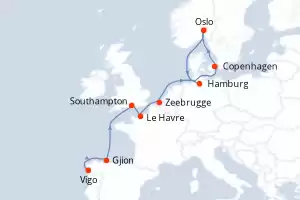 Itinerary : Vigo, Gjion, Southampton, Le Havre, Zeebrugge, Copenhagen, Oslo, Hamburg