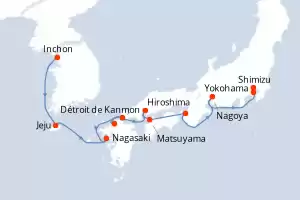 Itinerary : Inchon, Jeju, Nagasaki, Kanmon Straits, Hakata, Hiroshima, Matsuyama, Wakayama, Nagoya, Shimizu, Yokohama